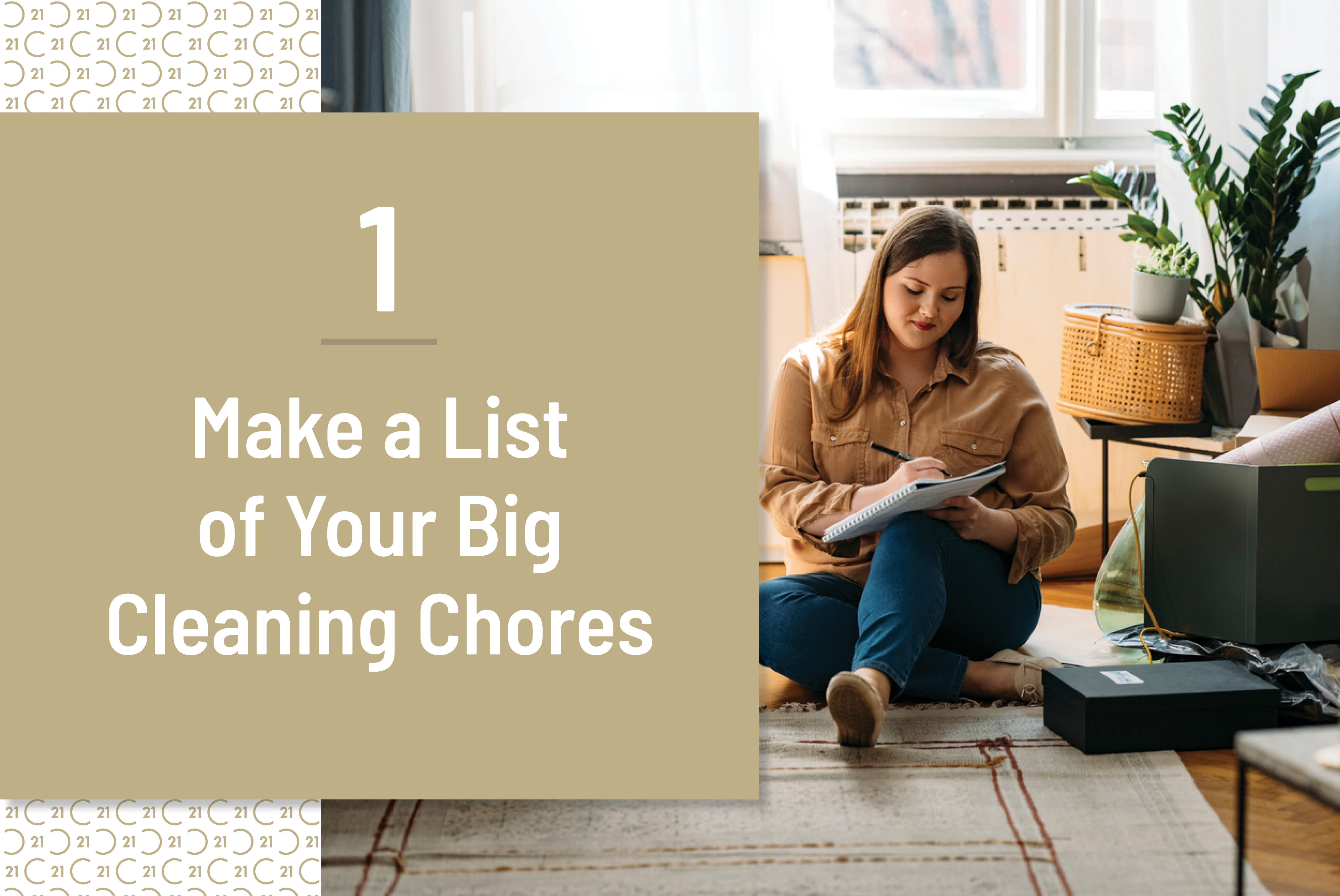 Take the time to list out the places you don’t often get to, such as the top of your fridge or your closets. Think about the chores that are more time intensive, such as changing air filters or deep-cleaning your carpets. 🧽 ✨